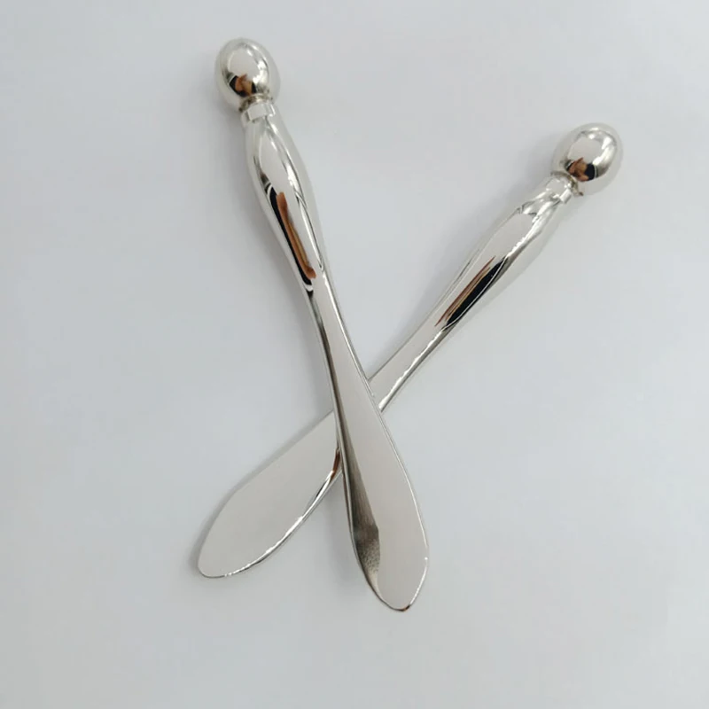 Aplicador de crema facial de metal con espátula para mezclar.